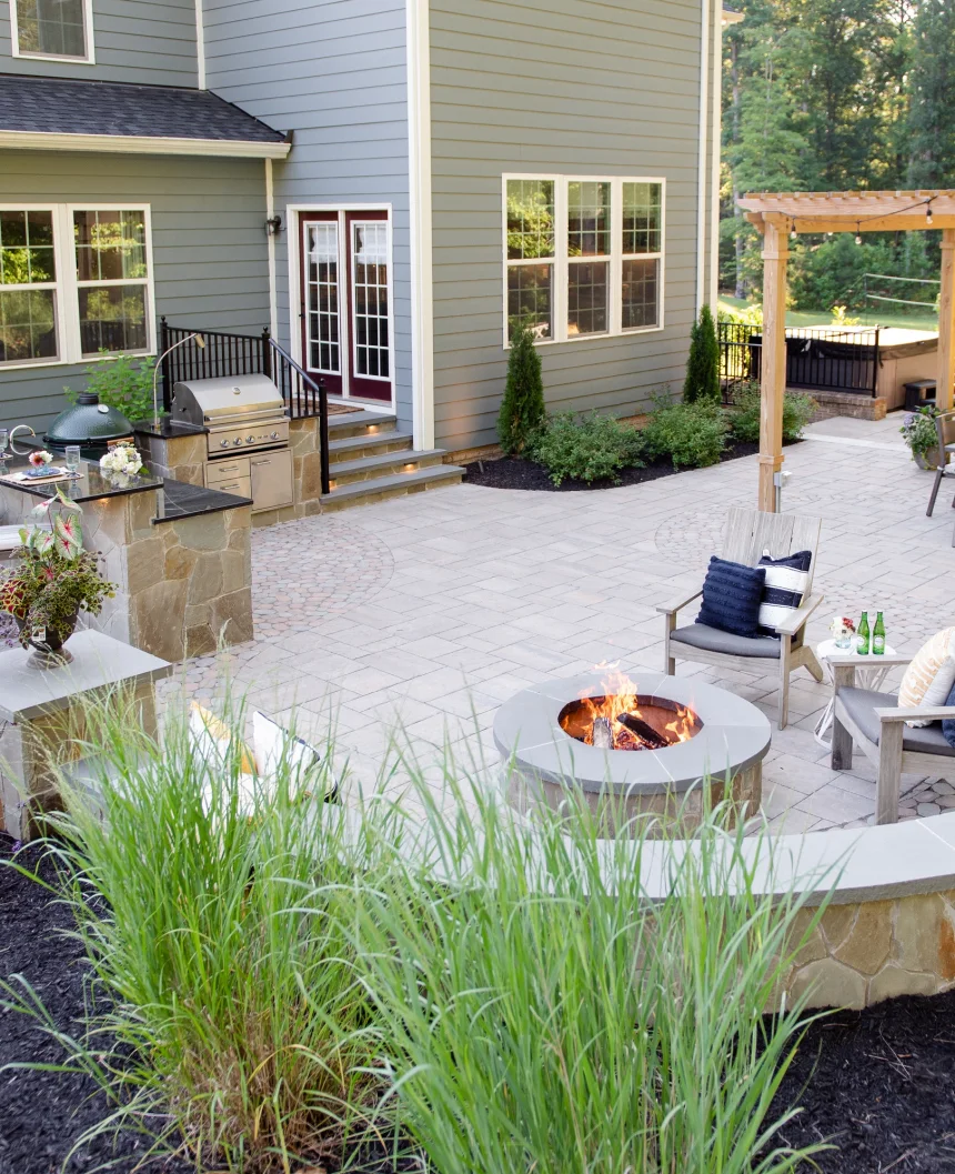 An Outdoor Kitchen (even a simple grill island) is typically the most expensive feature you can add to a patio. The reason for this is the combination of detailed masonry work, expensive countertops, weather-resistant stainless steel appliances, and permitted utility requirements. Because these costs add up quickly, outdoor kitchens and grill islands are often scaled back, designed for a phase 2 implementation, or sometimes completely removed from the project.