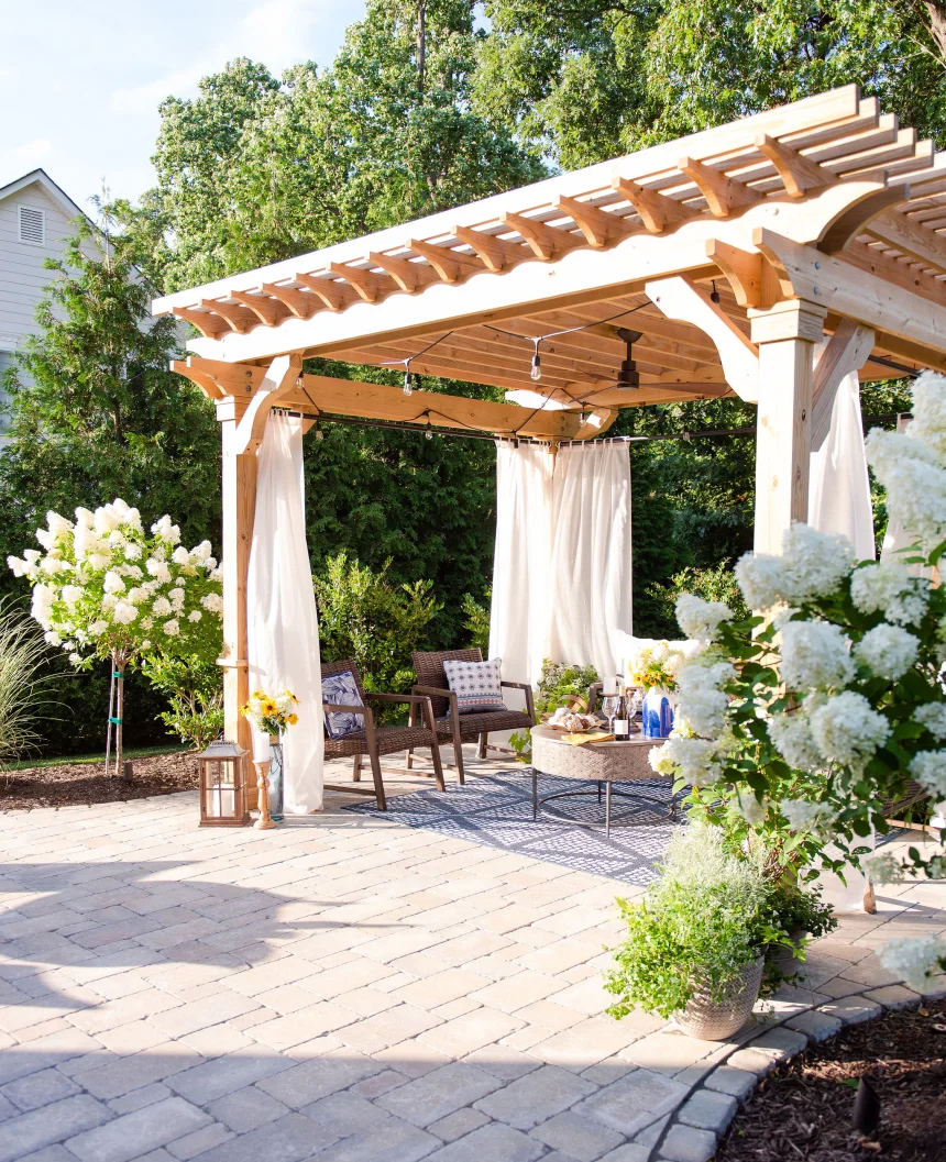 To increase the shade produced, design a pergola with additional rafters, retractable shades, & curtains.