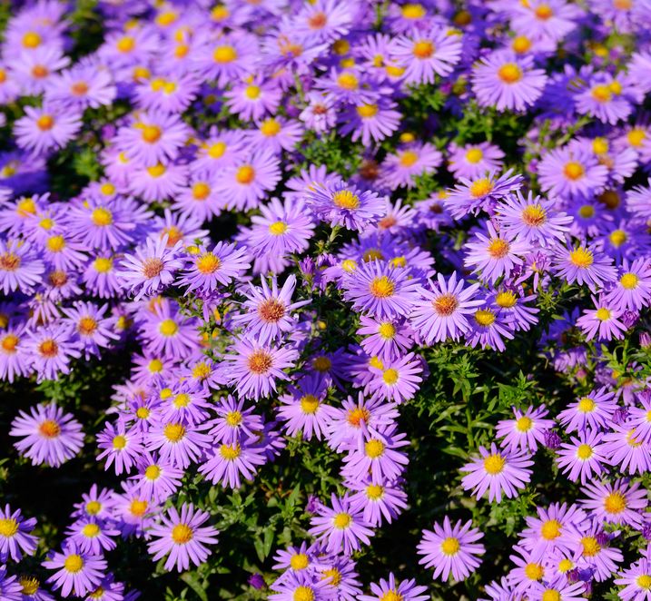 Pictured: Asters are a native perennial that provide stunning Fall interest. They offer masses of flowers from late Summer into Fall, where their cool colors perfectly contrast the warm colors widely associated with the season.