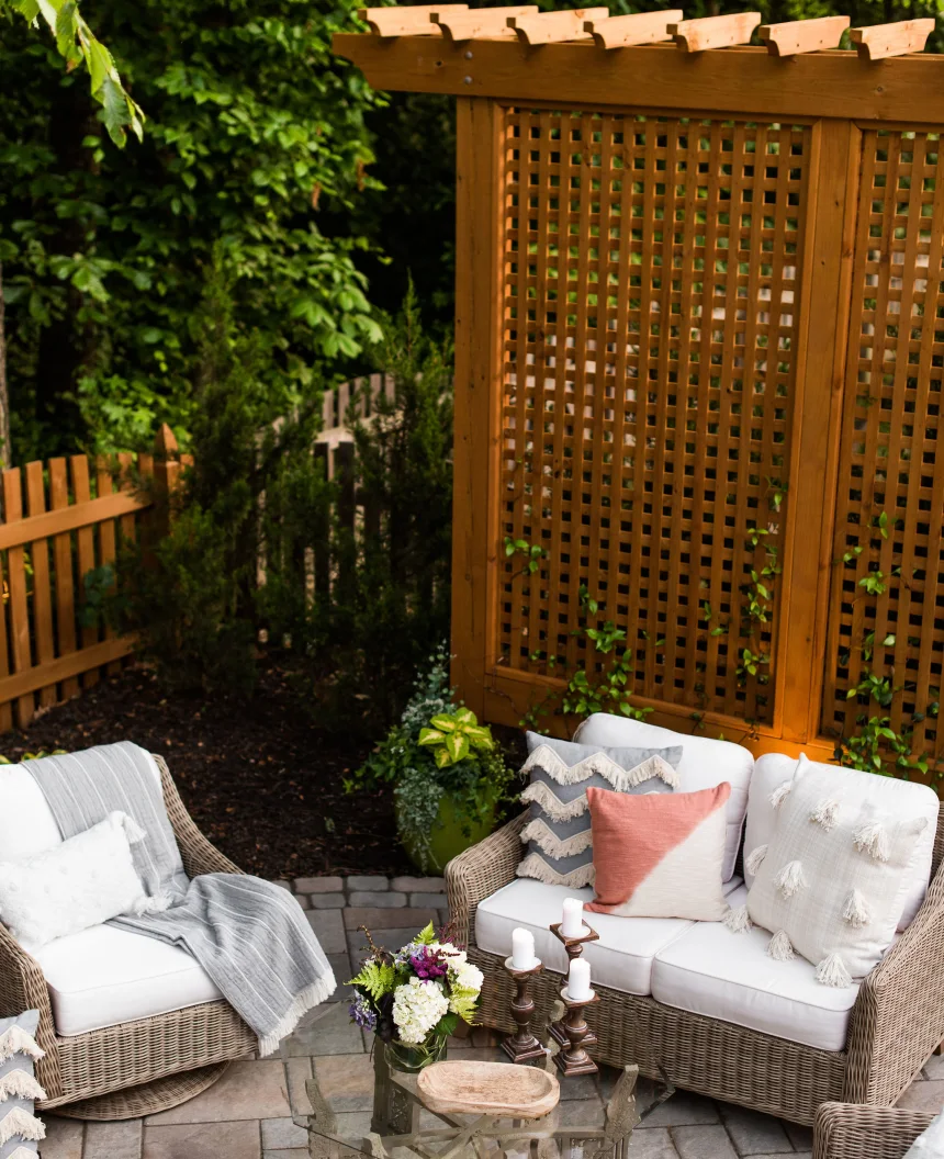 It's impossible to create romance if you feel like you're being watched (unless you're into that sort of thing). When planning your outdoor date night, you should always consider privacy. Privacy screens can be created with evergreen trees or carpentry lattice. If your space doesn't have built-in privacy, consider purchasing or making a foldable outdoor screen that can be moved around for optimal privacy.