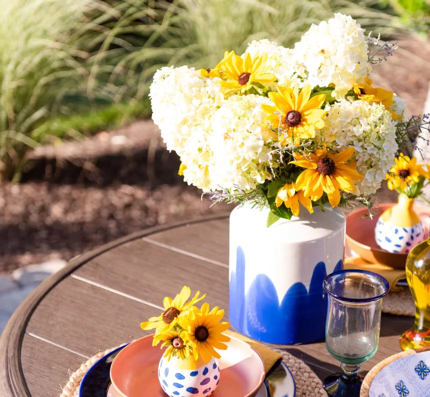 A bouquet of fresh flowers can immediately change the mood of your table and outdoor living space. While one from the market or florist is great, consider a handpicked bouquet from your landscape to add a personalized touch.