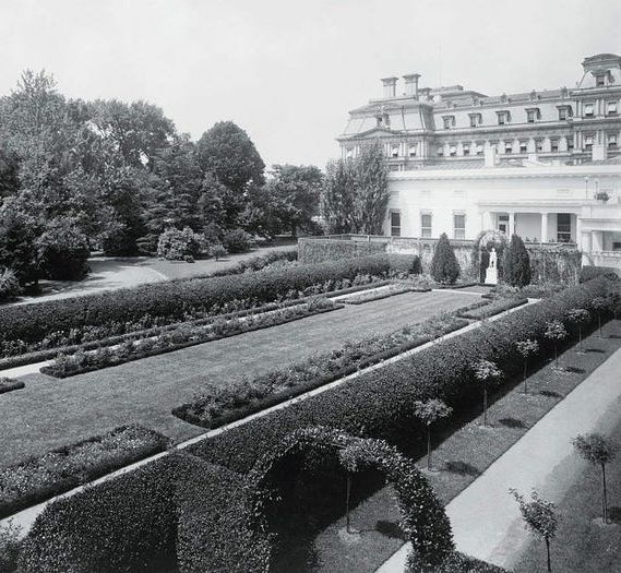 While at Princeton, Farrand met Woodrow Wilson and his first wife, Ellen Axson Wilson. When Wilson became president, the First Lady hired Farrand to design the White House’s East Colonial Garden (now redesigned as the Jacqueline Kennedy Garden). She also designed the West Garden, which is now the White House Rose Garden.