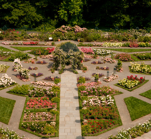 Initially designed by Farrand in 1916, this garden was not completed until decades later. Iron shortages during World War I made the completion of the fence and gazebo, central design features of the garden, impossible. In the mid-1980s Garden Board member Beth Strauss saw the original designs and showed them to David Rockefeller, who then generously supported the completion of Farrand’s fully realized designs in 1988. The garden is named after his wife, Peggy, a horticulturist and conservationist who loved roses.