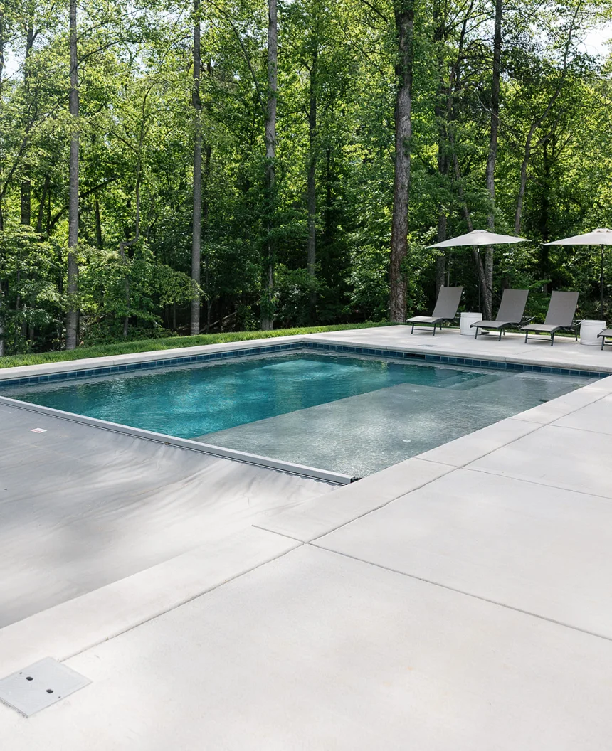 Linear Pools: The tracks for automatic covers can be hidden beneath the coping, maintaining a seamless aesthetic.