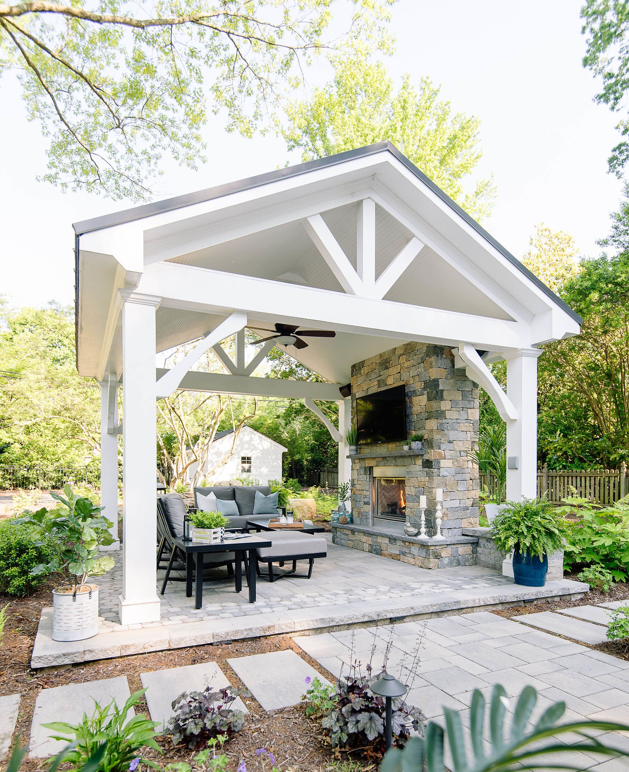 Cons: Pavilions are one of the most expensive structures you can add to a patio. Additionally, unlike a porch, these free-standing structures are typically detached from the house and cannot be enjoyed on a rainy day without getting wet.