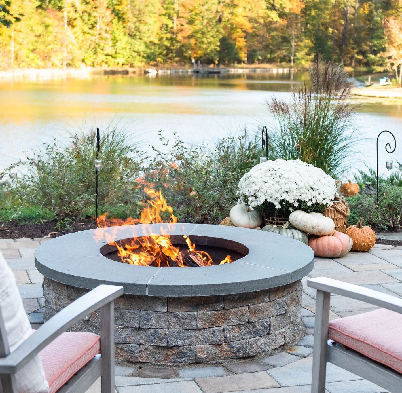All Outdoor Dreams' segmental block fire pit kits come with a custom stone cap and fireproof steel liner. Kits, like those pictured, typically start at $5,600.