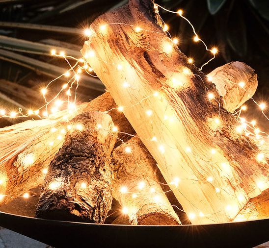 When you're not burning a fire, make a beautiful lighted display out of your fire pit or fireplace. The popular "Fairy" lights work best because they lack the unsightly wires of traditional string lights.