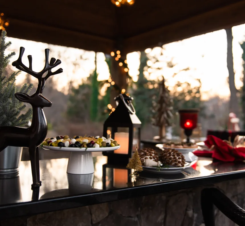 If you're hosting a holiday party, be sure to incorporate your patio, deck, or porch. Help to enhance the holiday scene by using indoor decor throughout your outdoor space. Just don't forget to bring everything back inside when the party is over!