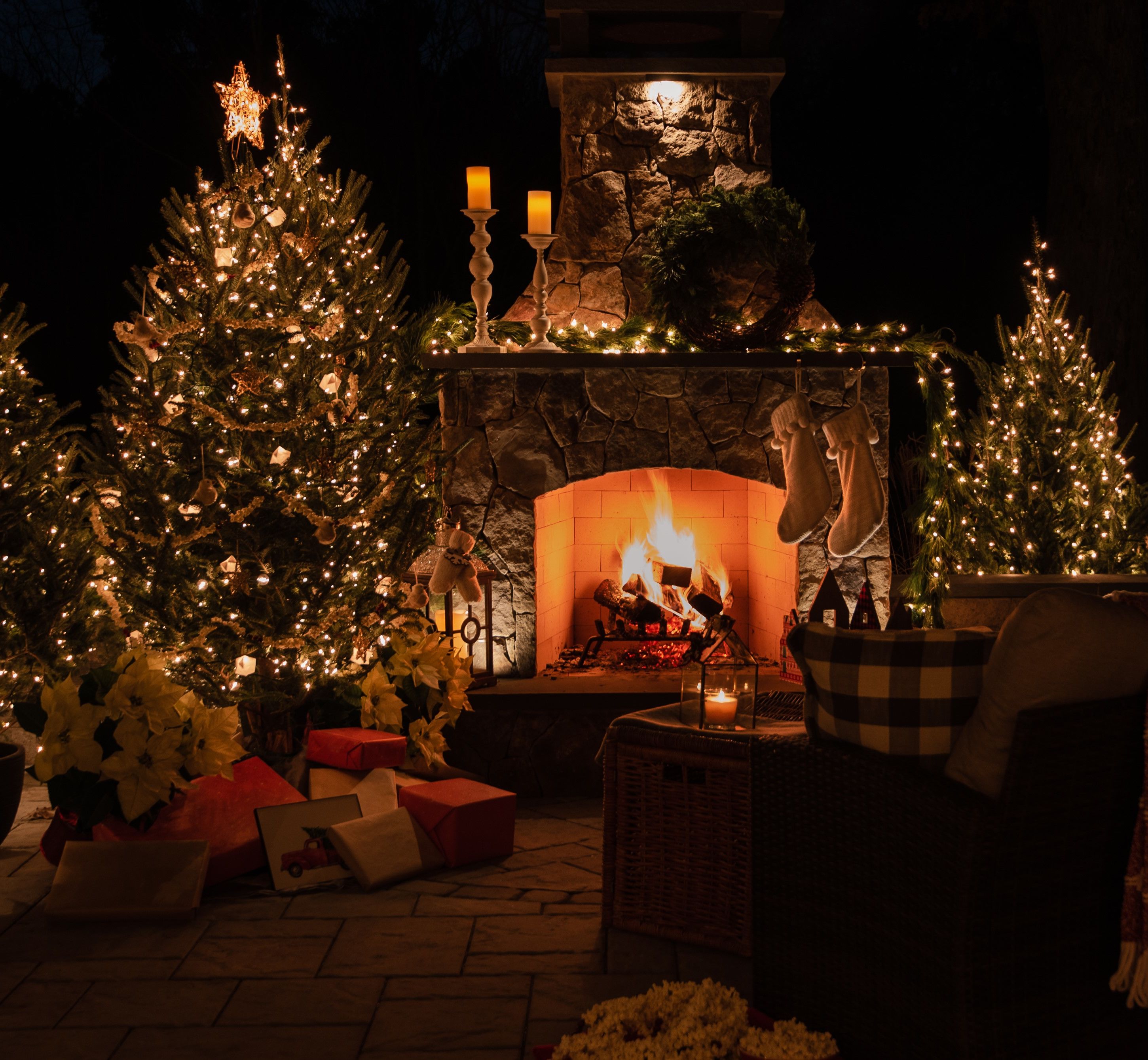 Our 2021 Holiday photoshoot delivers all of the holiday feels! From roasting chestnuts to sleigh bells to milk and cookies for Santa, we have set the scene for holiday magic and memories. The project features a Techo-Bloc paver patio, raised terrace, outdoor fireplace, and complementing landscaping and lighting.