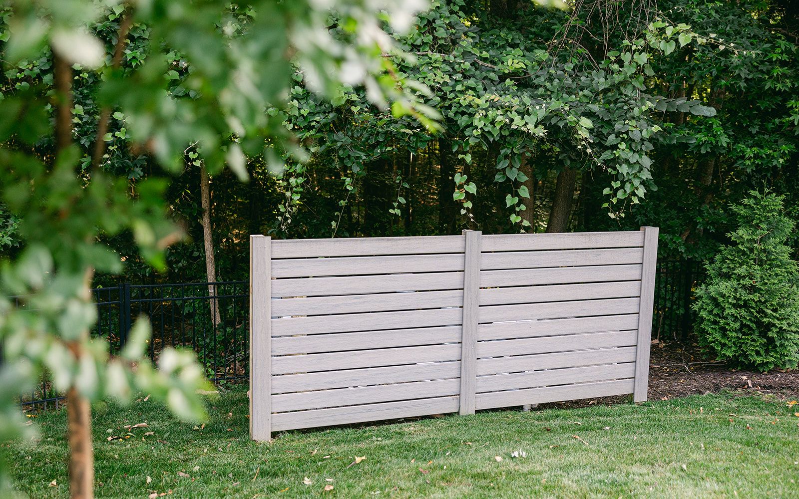 To hide this pool equipment, we built a custom screen out of composite decking to match the deck we built as part of the project.