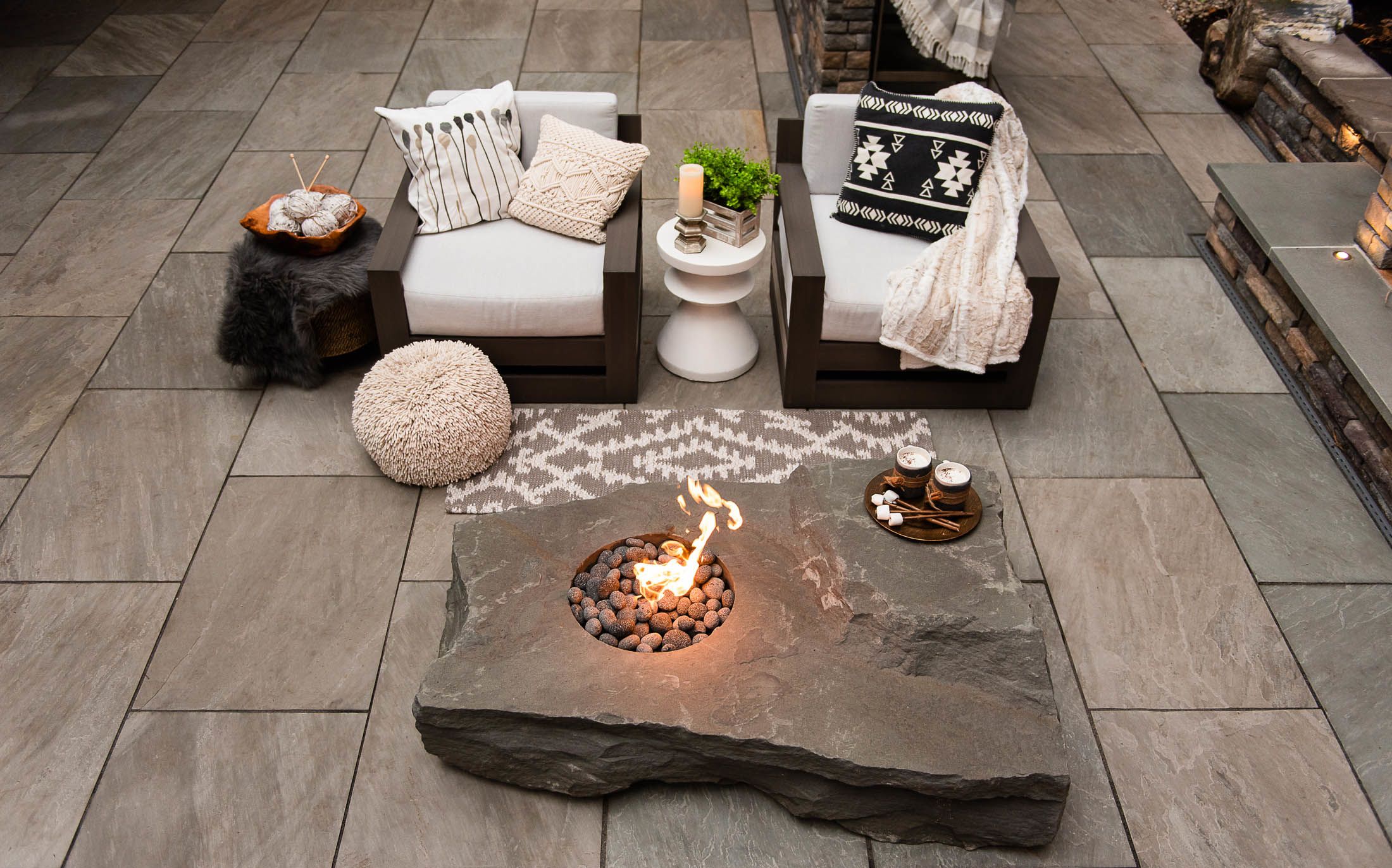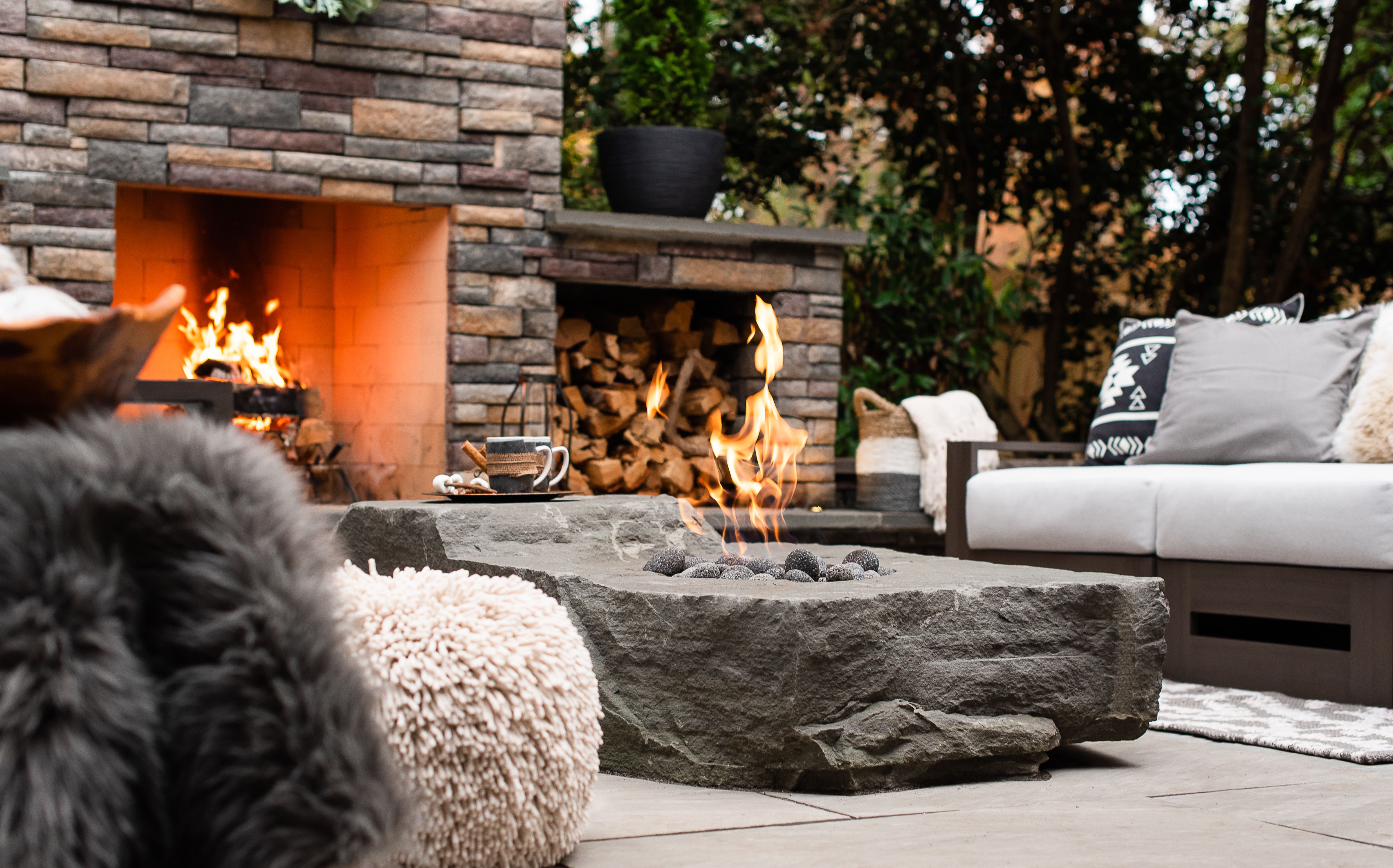 Though it looks like it was always meant to be, the boulder fire table was a late addition to the space. While picking out materials at the stone yard, our clients fell in love with this unique feature from Fireboulder. The design was quickly adjusted to accommodate the feature and our utility plan was updated to provide gas. With this feature included in the space, our clients are now able to enjoy the ease and convenience of a gas fire as well as the unbeatable ambiance of a wood fire. Additionally, the added heat source allows the space to be enjoyed on even cooler evenings.