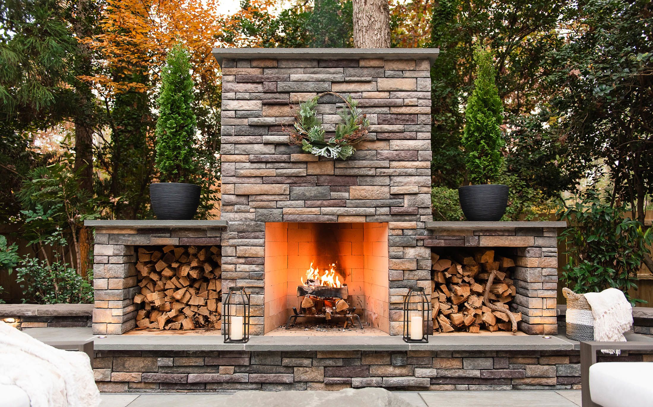 Wood-Burning Outdoor Fireplace & Wood Boxes