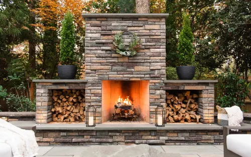 If you're looking to create a formal and elegant experience, a patio fireplace is a perfect addition to your space. These large structures provide a grand stature to an outdoor living space and create an elegant ambiance.
