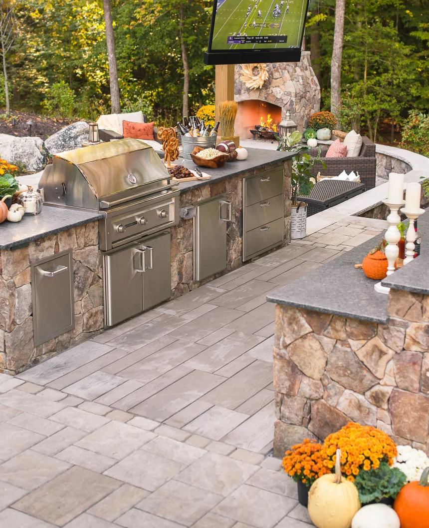 Along with fire features, Outdoor Kitchens are one of the most popular patio amenities. As often happens indoors, well-planned outdoor kitchens are the centerpiece and gathering point of outdoor living spaces. As the popularity of outdoor kitchens grows, new innovations provide an increasing number of options for homeowners. In many ways, outdoor kitchens are more versatile than indoor ones.