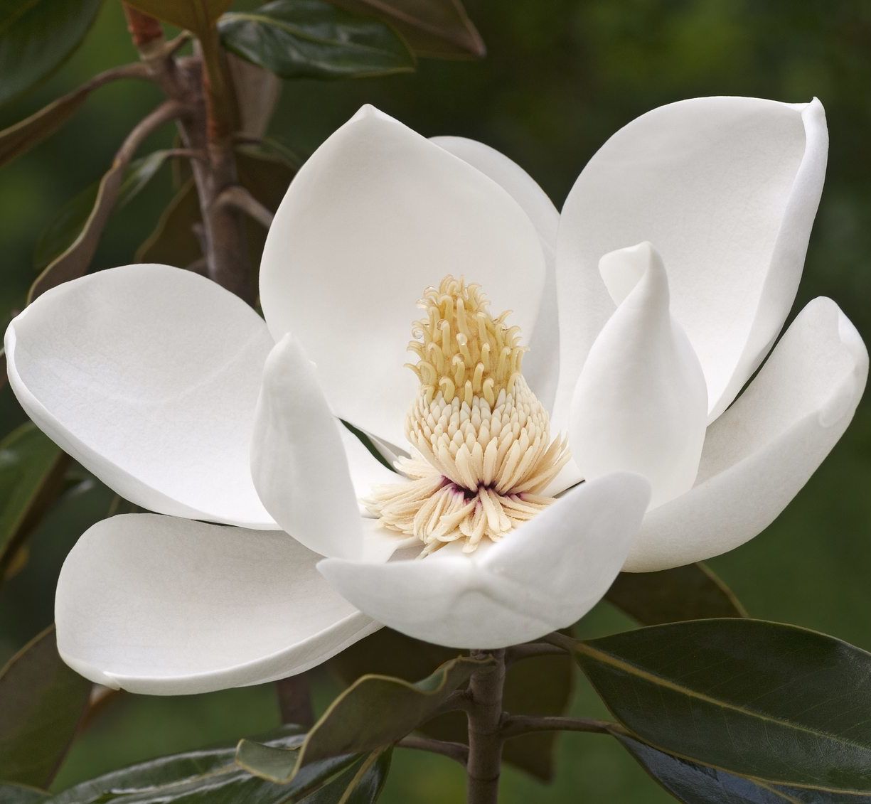 The magnolia is one of the most prominent native trees at Augusta National. The botanical name Magnolia grandiflora is descriptive of the massive evergreen tree with large, fragrant white flowers that bloom in May and June. Deciduous imported varieties are also present.