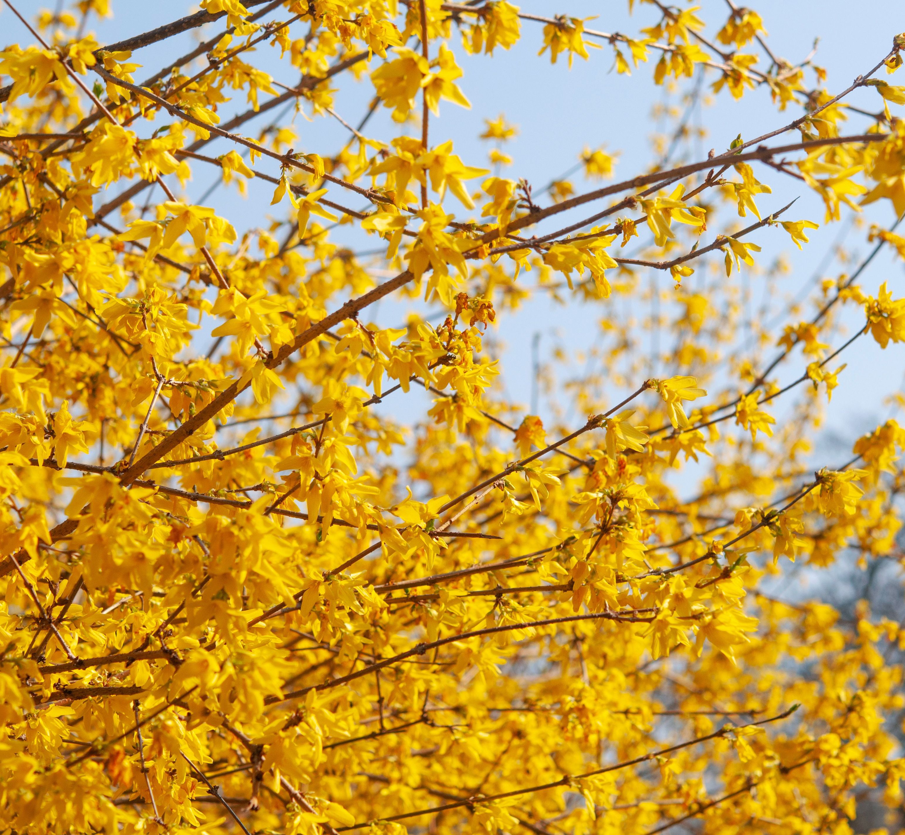 Forsythia intermedia is a hardy, deciduous shrub native to the Far East and belonging to the Olive family. It has become one of the more popular spring-flowering shrubs in America, as few plants can match its brilliant display of yellow flowers in March and early April.