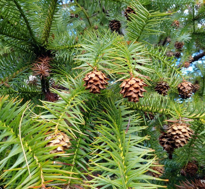 The exotic Cunninghamia lanceolata, native to China, is an unusual evergreen. The flowers are inconspicuous green catkins, which are followed by an ornamental cone. Older foliage remains dry and dead on the branches for several years. The Chinese fir is a highly prized tree in China and Japan, where it's often used for lumber and woodworking.