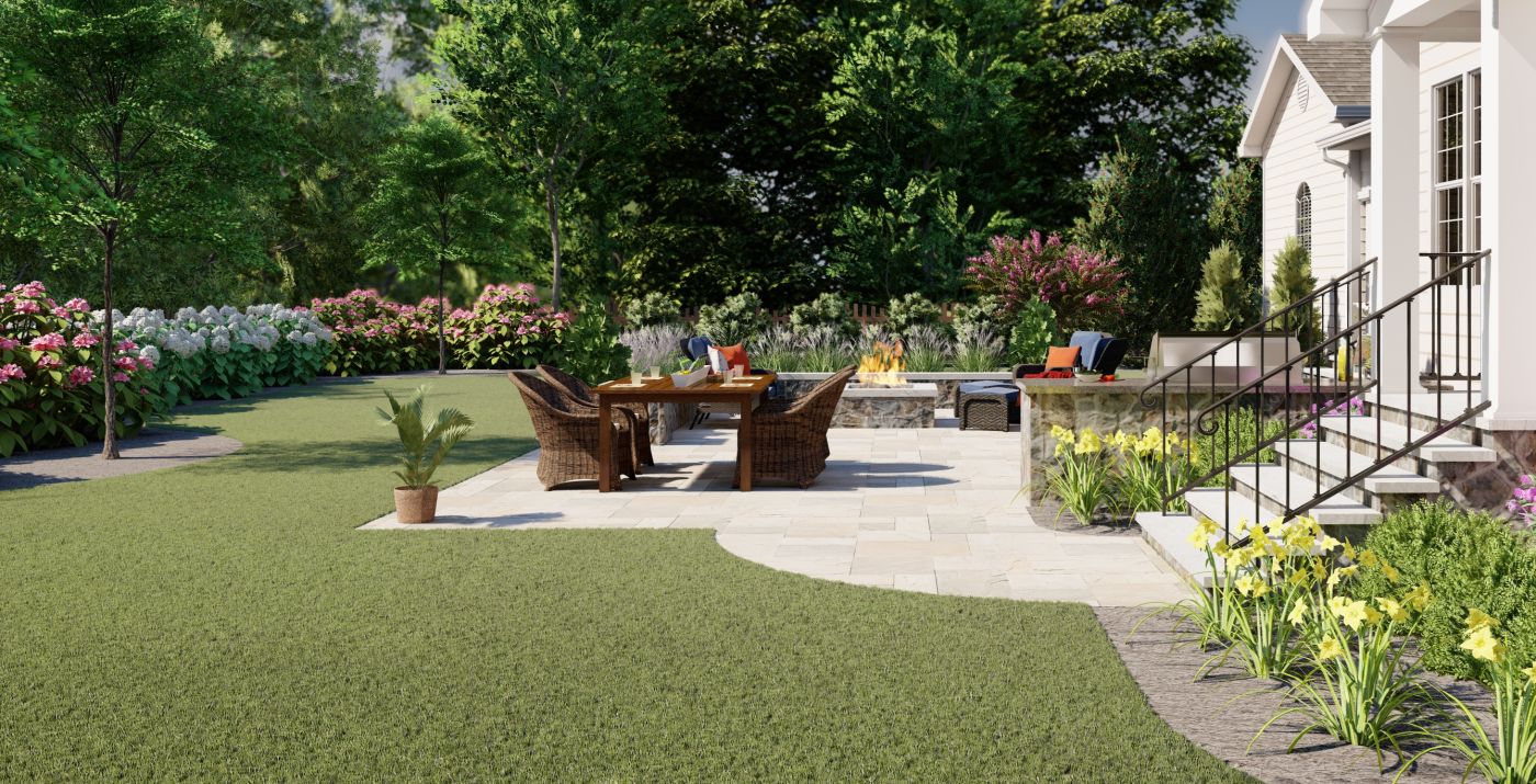 The goal of this design was to create a versatile patio space along with a complimentary landscape plan for the front and backyard. Our unique design process allowed the couple to explore various layout options while also keeping the project on budget.