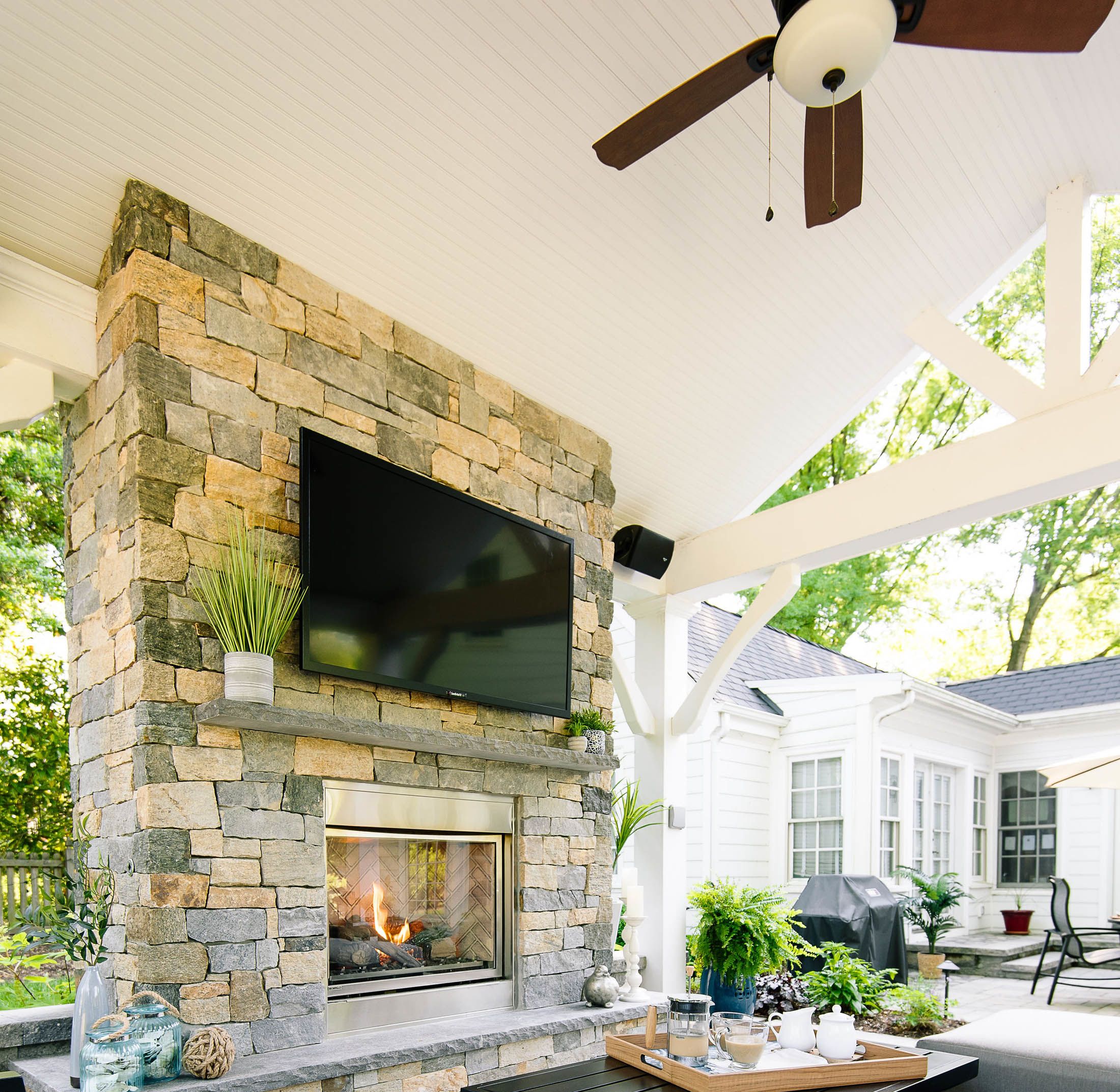 If shade is what you want, a full roof structure is what you need. These pavilion structures create stunning outdoor rooms that are as comfortable as you can be on a patio. The full shade created by pavilions provides the best setting for watching an outdoor television during the day. Additionally, upgraded lighting options create wonderful and unique outdoor evening experiences.