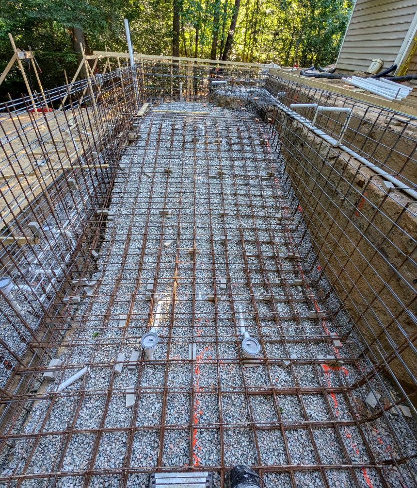 Ask about the intended thickness of the gunite shell. To be structurally sound in the clay soils of Central Virginia, a concrete pool shell shouwl be at least 8 inches thick throughout (with even more thickness in certain areas like the floors or bond beam, depending on engineering). Some lower-cost builders might shoot thinner walls to save on material, which compromises strength. Thicker concrete walls (per proper design) mean a more durable pool that’s less likely to crack.