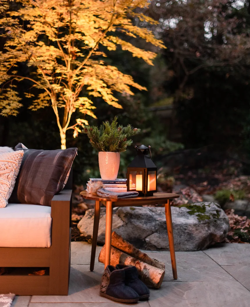 In an outdoor setting, illumination typically starts with low voltage lighting throughout the space. A balanced mix of fixtures should light the space evenly and allow you use your space after the sun goes down.