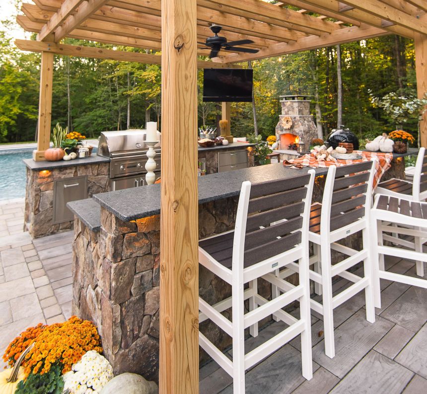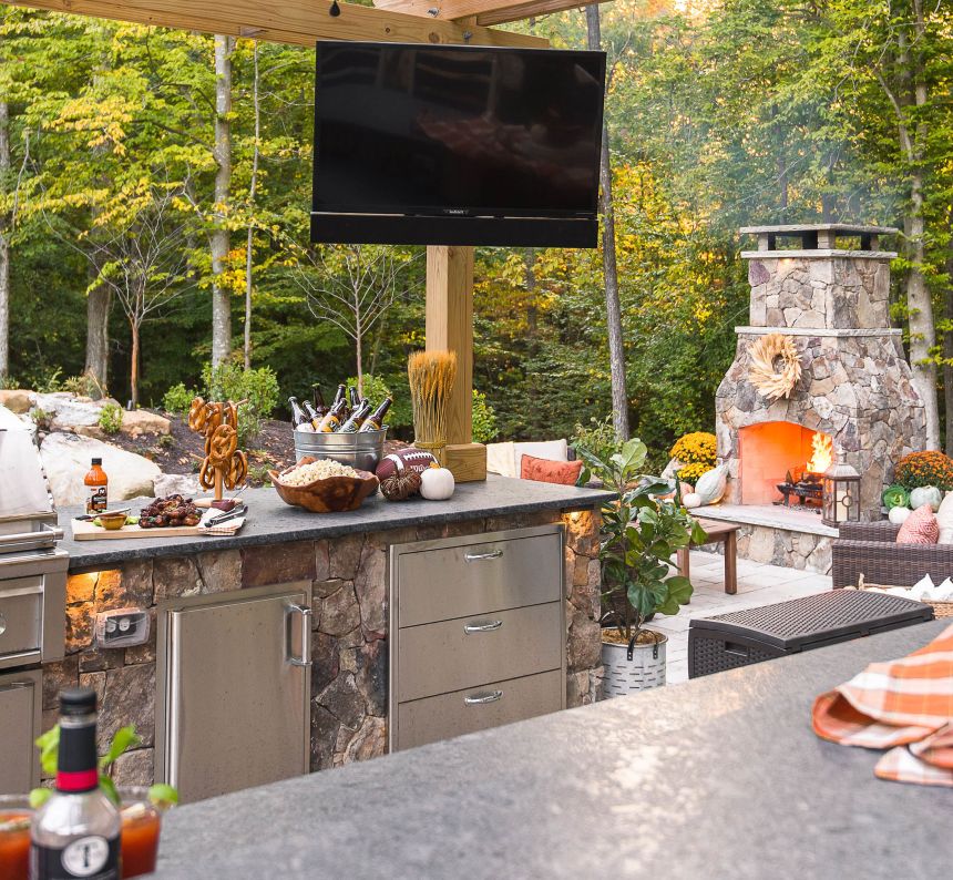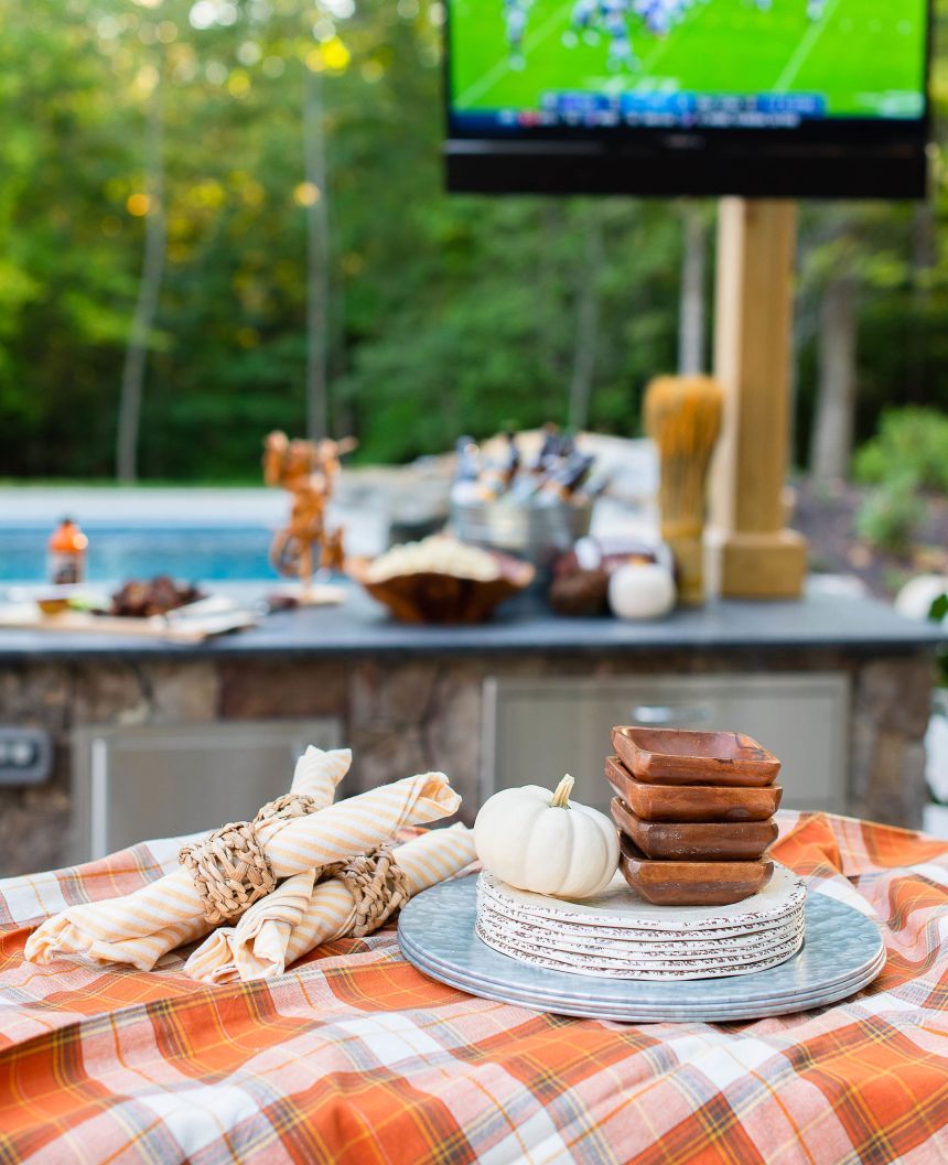 Not everyone wants to watch a big game standing up, so make sure you have plenty of seating space. Having enough seats may mean you need to utilize some indoor chairs. Also, consider increasing the comfort of your masonry sitting walls with cushions.
