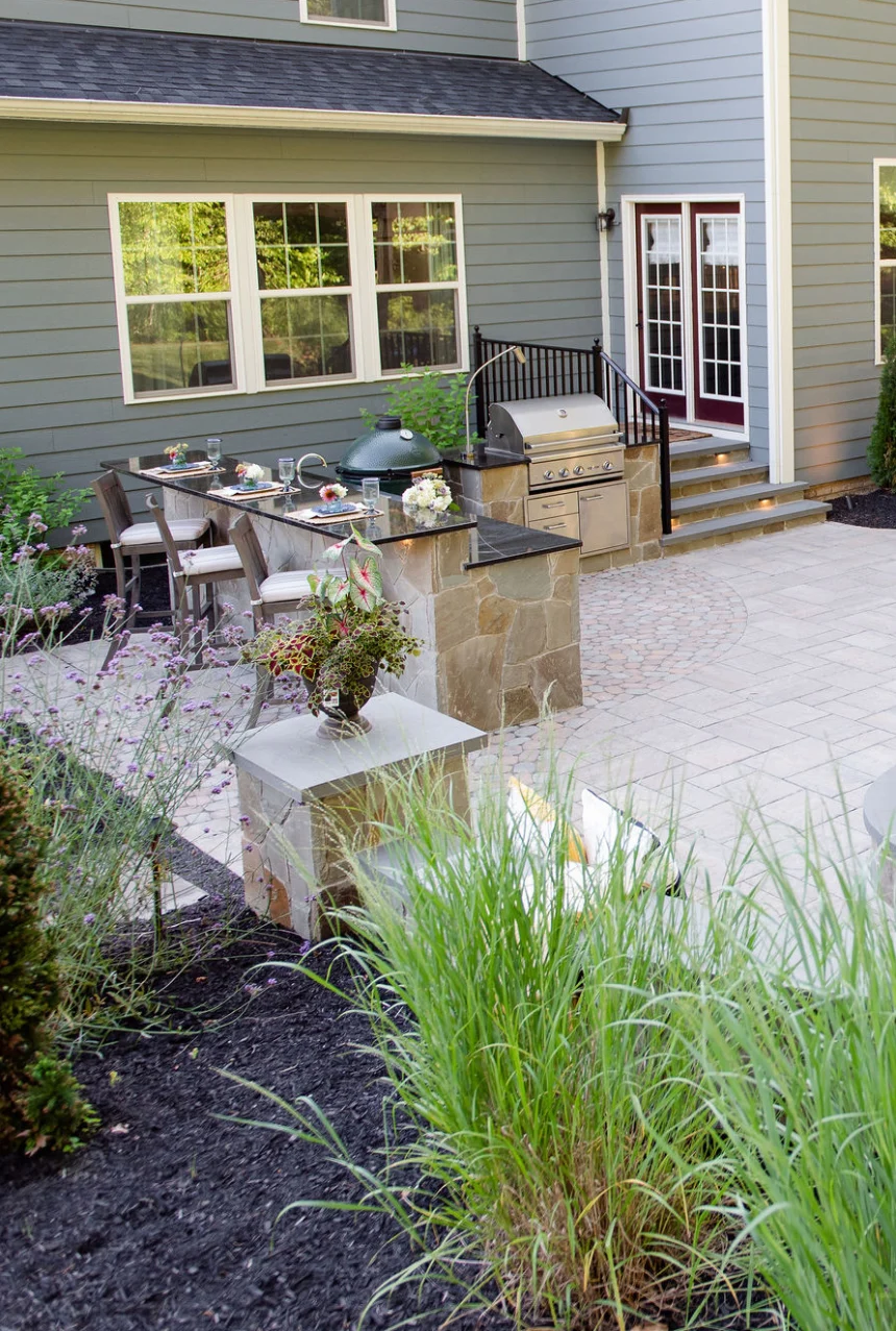 As with indoors, adding bar-top seating is a popular addition to outdoor kitchens. Bar-top seating is a fun change of pace for casual dining or cocktails. It also provides seating for family members and guests to keep the grill master company.