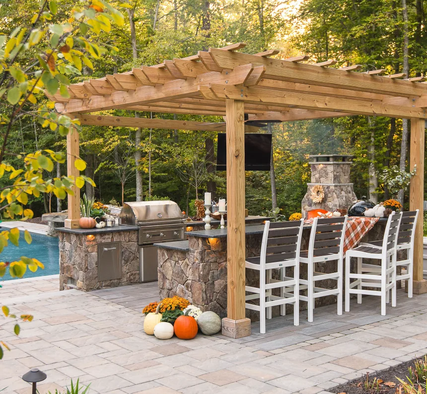 When budgeting, add $8,500 - $20,000+ for a pergola and $25,000 - $40,000+ for a pavilion. All pricing assumes custom structures and varies depending on size, design, & materials.