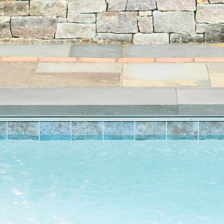 For a clean and finished look, our transition from pool shell to recessed poolside trough is always tiled.